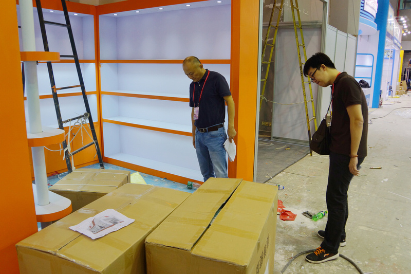 工作人员正在检查展位