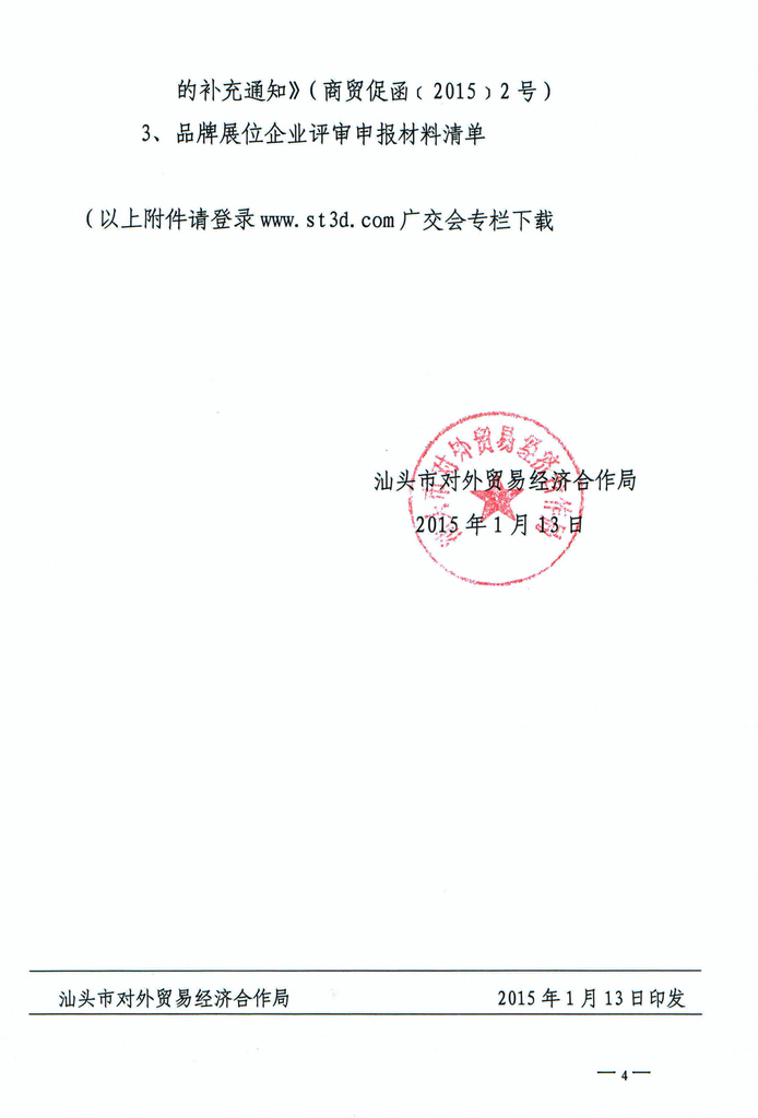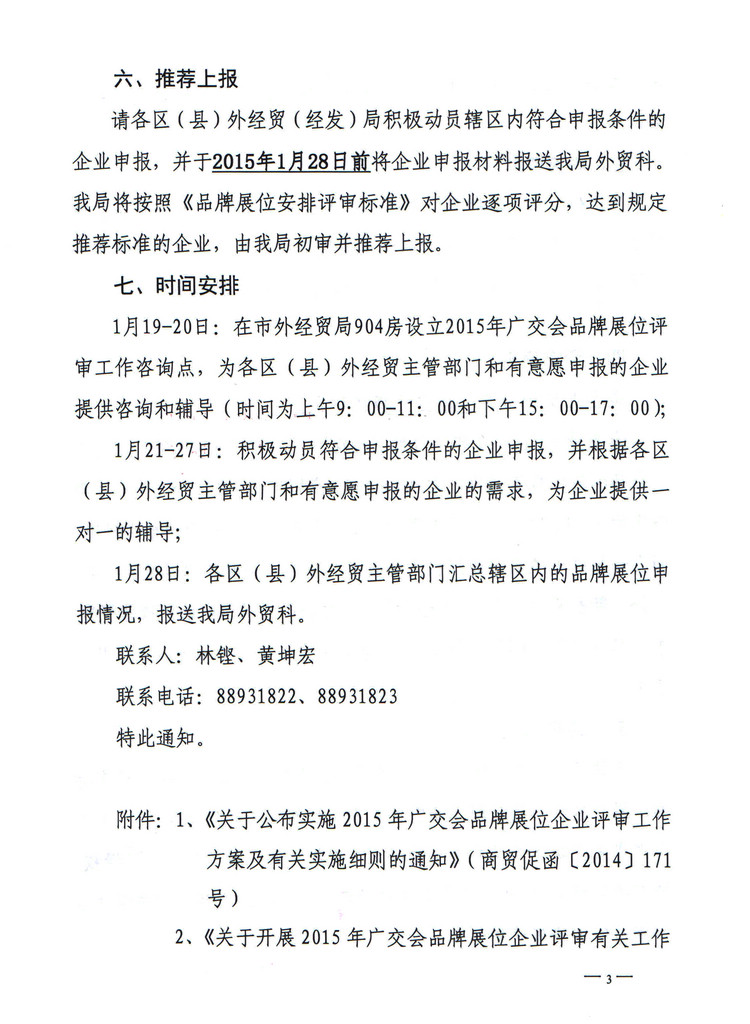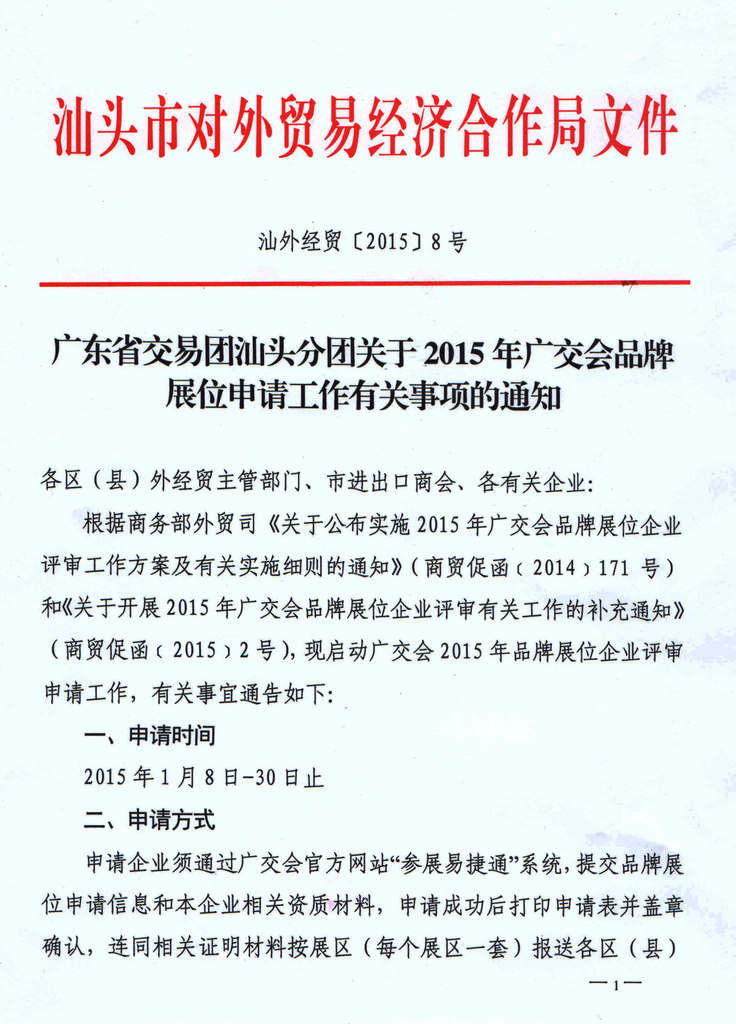 广东省交易团汕头分团关于2015年广交会品牌展位申请工作有关事项的通知
