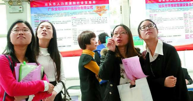 昨天一大早,市人力资源市场已经熙熙攘攘,热闹非凡,各个摊位前都围满了前来应聘的求职者。毕业于肇庆学院法学专业的小李和毕业于华南农业大学旅游管理专业的小柯结伴来到招聘会现场,开始寻找是否有适合应届大学毕业生的工作。小李告诉记者,之前自己跑过广州、深圳的招聘会,但综合考虑生活成本和能更好照顾父母等因素,最终还是决定回汕头工作,希望能够找到行政助理、人力资源等职位。小李的高中同学小柯从去年秋季招聘会就开始求职之路,之前拿到了一个旅游平台采购商的offer,工作地点位于深圳罗湖,虽然专业对口但月薪仅有3500元加提成。小柯认为,这点月薪在深圳难以实现经济独立,再加上女孩子在外工作家人始终不太放心,再三思虑还是回绝了。