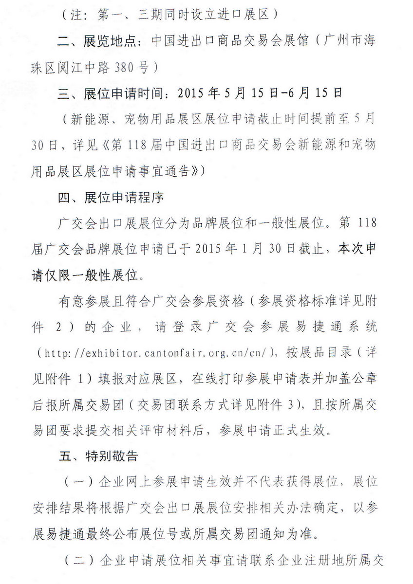 第118届中国进出口商品交易会出口展展位申请事宜通告