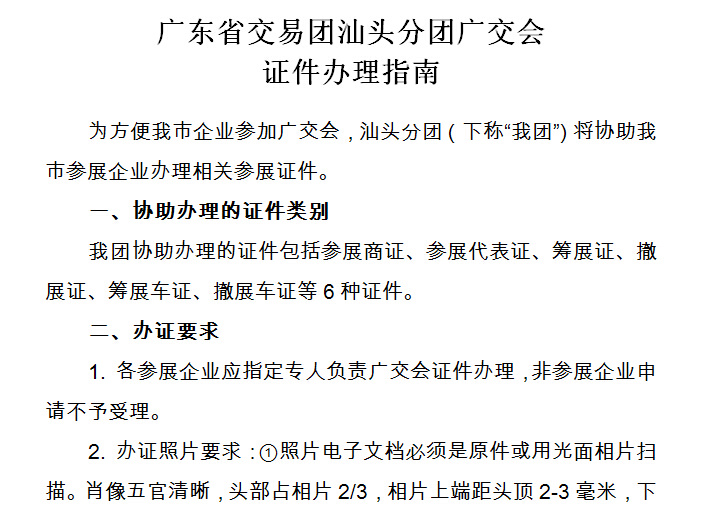 广东省交易团汕头分团广交会证件办理指南