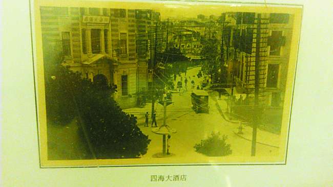 图中左侧为四海大酒店