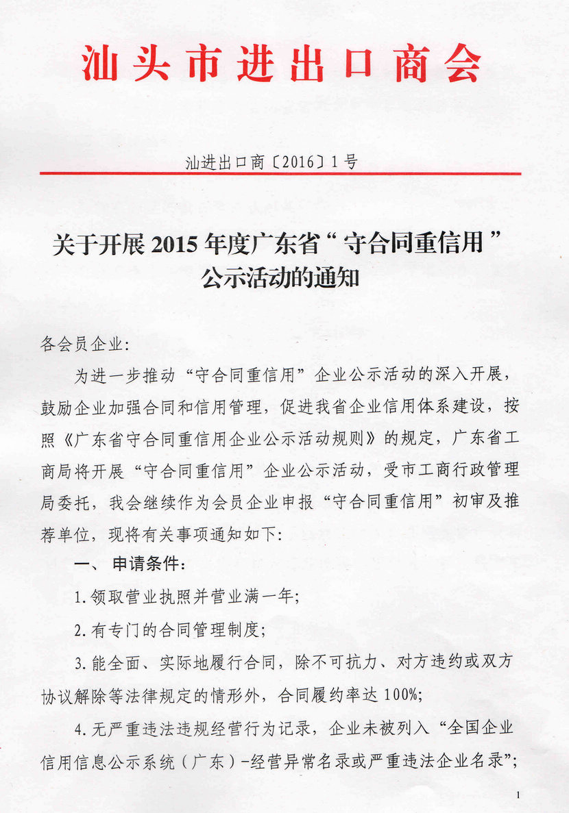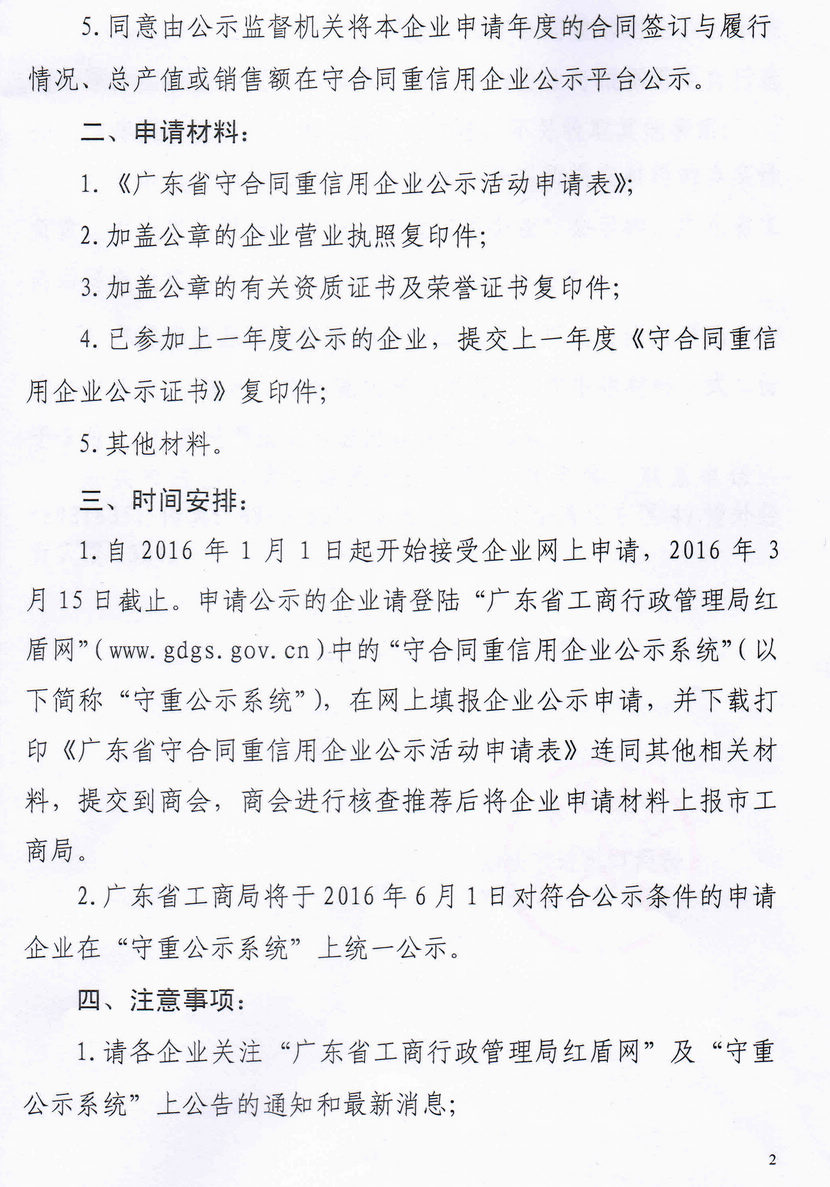 关于开展2015年度广东省“守合同重信用”公示活动的通知