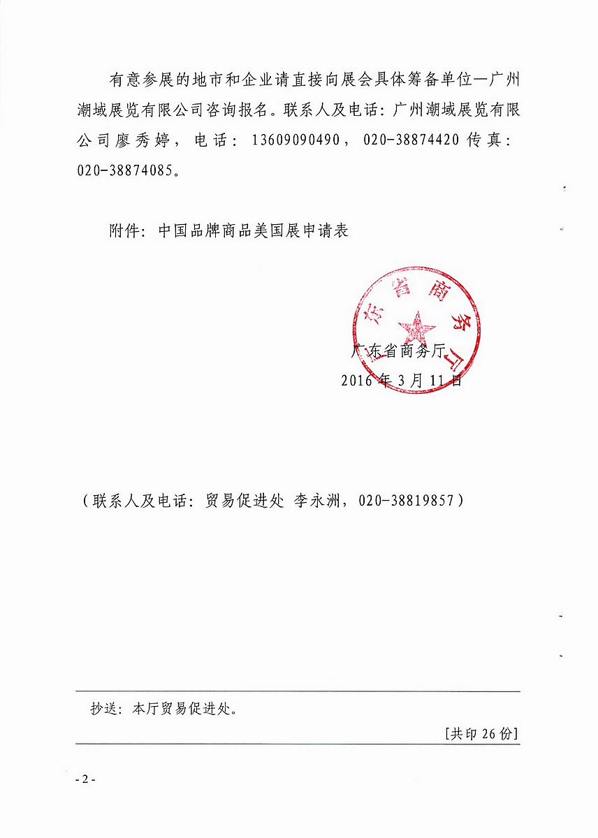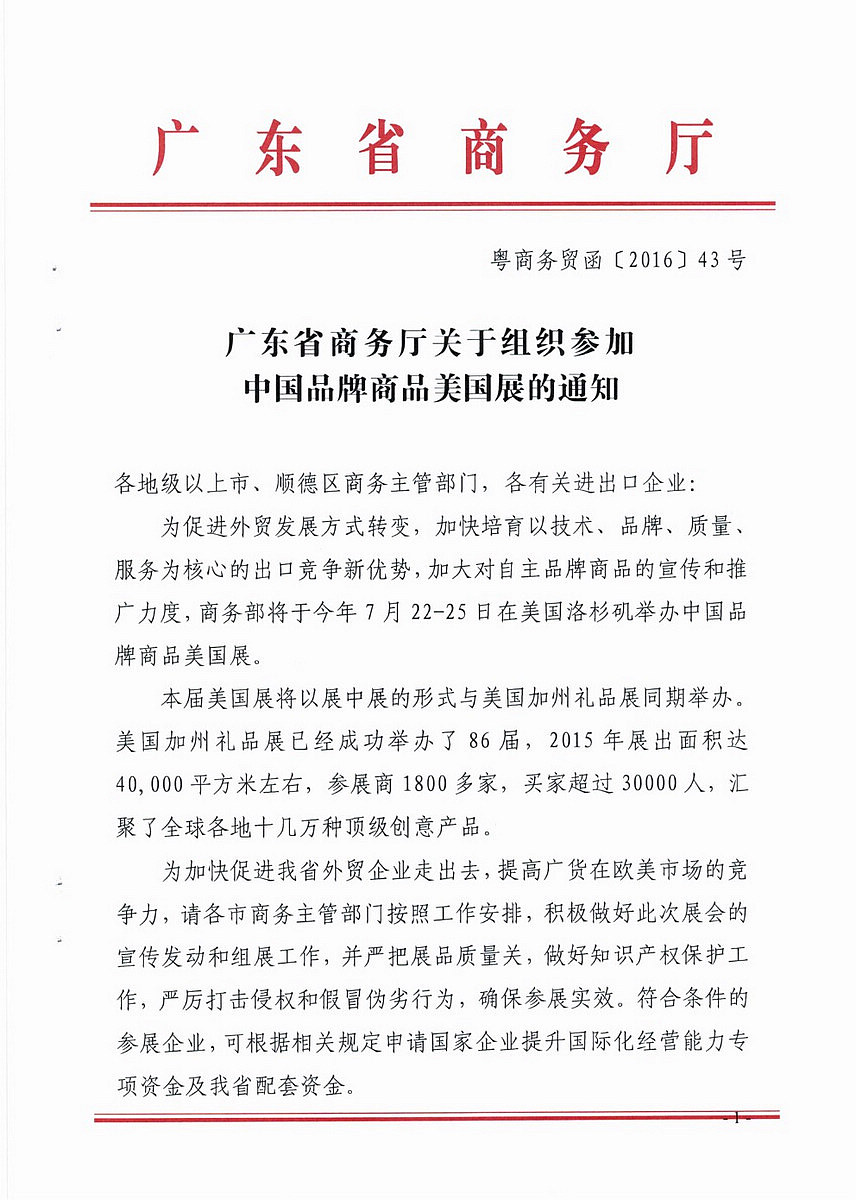 点击次数:2390    发布时间:2016-03-22  附件:广东省商务厅关于组织参加中国品牌商品美国展的通知.PDF