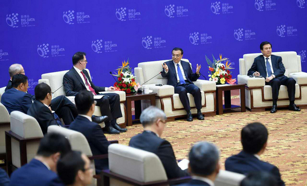 国务院总理李克强24日下午在贵阳花溪迎宾馆同出席中国大数据产业峰会暨中国电子商务创新发展峰会的国内外业界人士举行对话会。