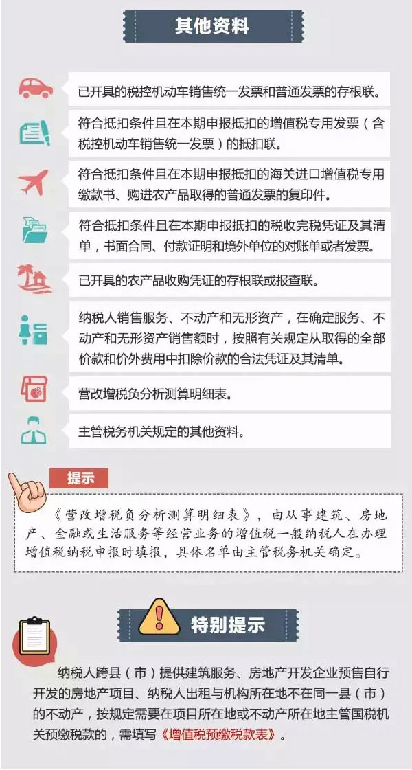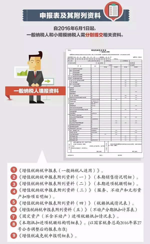 6月份是全面营改增试点后首个纳税申报期。近日,国家税务总局发布系列文件,就营改增后纳税人进行增值税纳税申报需要填报的资料作了明确。不同纳税人填报资料有很大区别,申报前,一定要仔细看看以下内容哦!