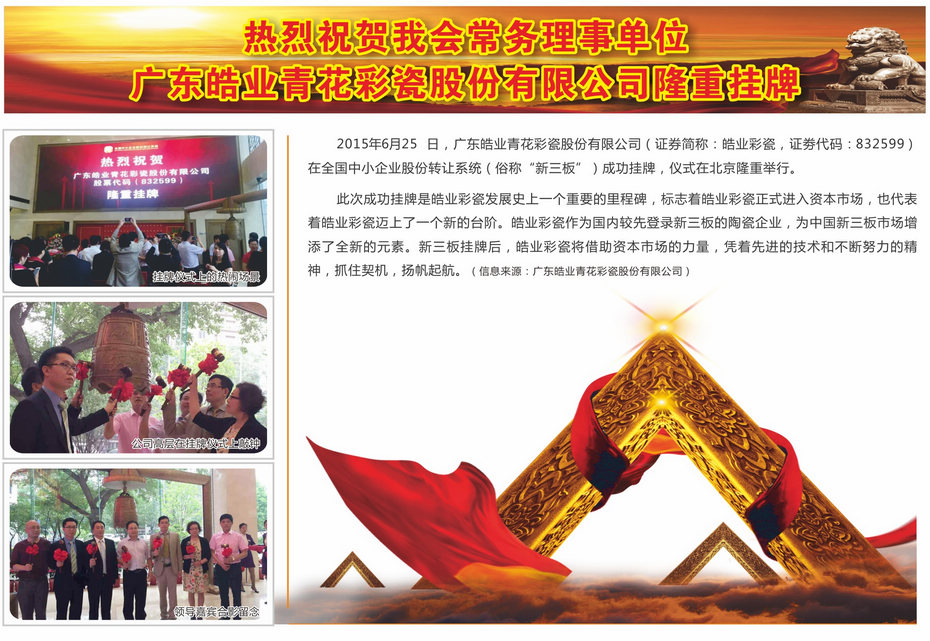 {会员风采}热烈祝贺广东皓业青花彩瓷股份有限公司隆重挂牌