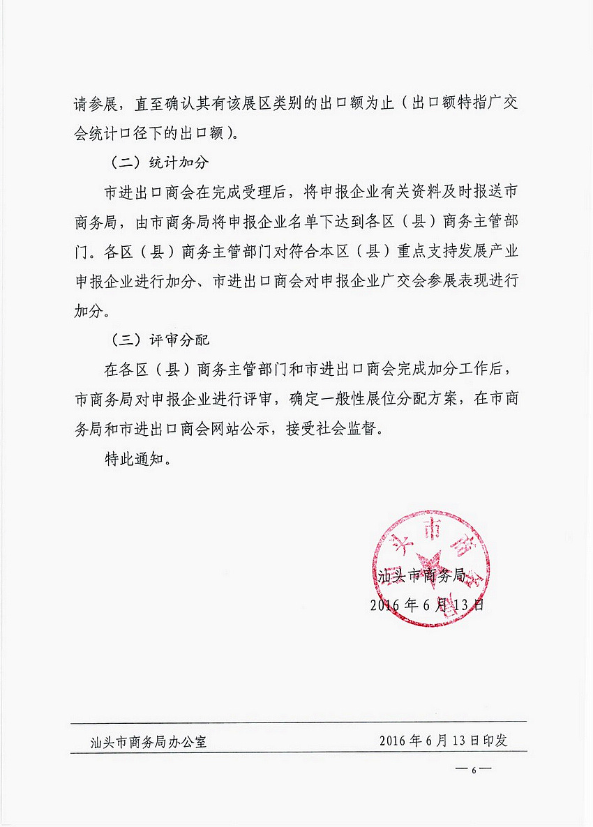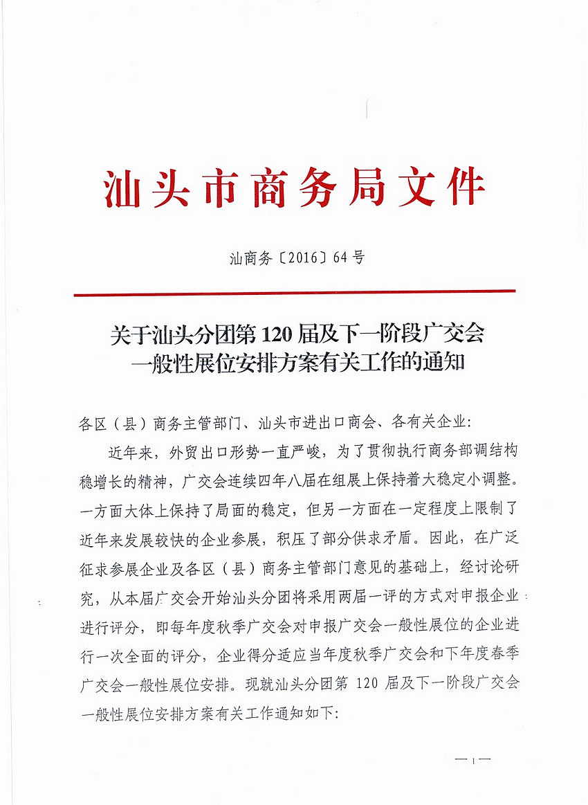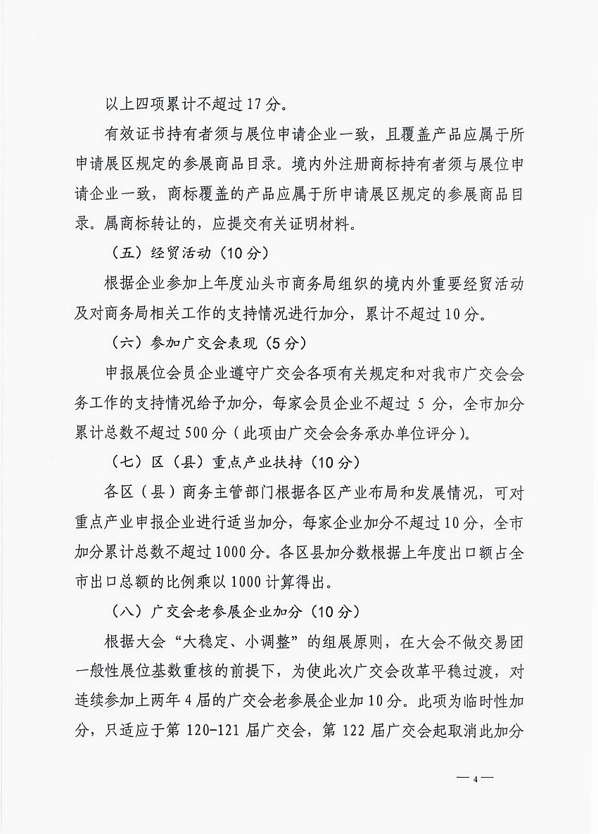 关于汕头分团第120届及下一阶段广交会一般性展位安排方案有关工作的通知