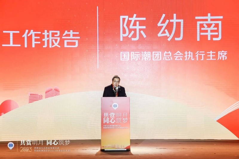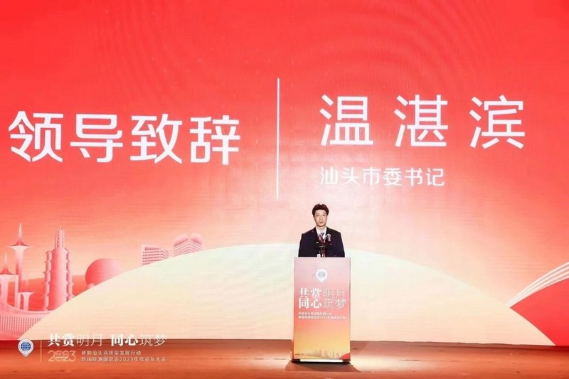 2023年9月18日,“共赏明月·同心筑梦”侨助汕头高质量发展行动暨国际潮团总会2023年度会员大会及其有关活动在汕头万豪酒店举行,来自30多个国家和地区、150多个潮团的300多位侨领代表齐聚汕头,叙乡情谋发展,深入实践“侨助广东高质量发展行动”。大会深入贯彻落实习近平总书记关于做好新时代“侨”的文章的重要指示精神,深入实施“侨助广东高质量发展行动”,进一步凝侨心、聚侨力、汇侨智,助推汕头在新时代经济特区建设中迎头赶上,谱写中国式现代化汕头实践的绚丽篇章。广东省委常委、统战部部长王瑞军,汕头市委书记温湛滨出席大会并致辞。广东省委原副书记蔡东士,汕头市委副书记、市长曾风保,广东省委统战部副部长、省侨办主任庞国梅,广东省侨联党组书记、主席李丰,汕头市人大常委会主任项天保,汕头市政协主席邱奕辉,国际潮团总会主席谢泽生,国际潮团总会执行主席陈幼南,汕头市委副书记、秘书长赖小卫出席大会。