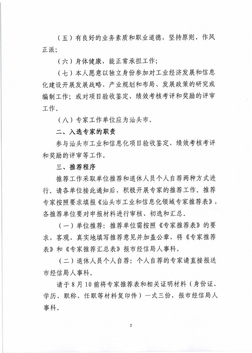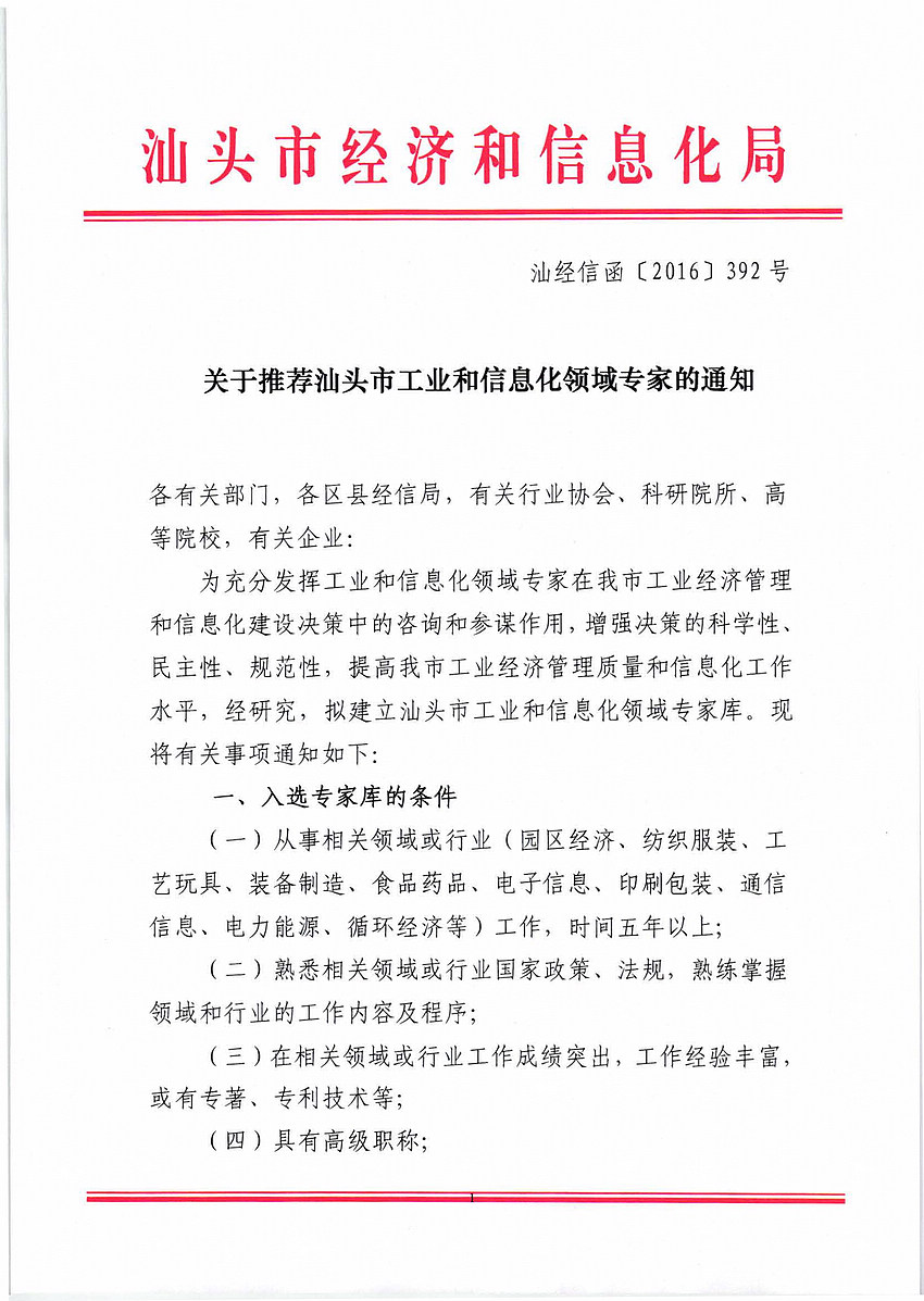 转发《关于推荐汕头市工业和信息化领域专家的通知》