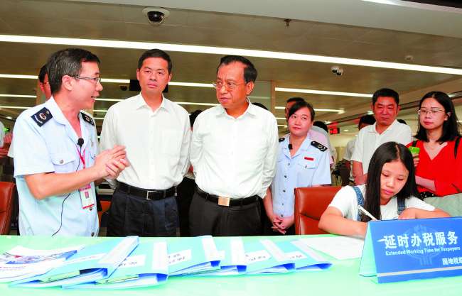 市委书记陈良贤、代市长刘小涛一行首先走访了市行政服务中心有关服务窗口,与窗口一线工作人员以及前来办事的群众和企业代表亲切交流,详细了解有关业务办理情况和办结时间。陈良贤对市直有关部门以及行政服务中心在深化审批制度改革、优化办事环境、方便企业和群众办事等方面取得的成效表示肯定。他指出,行政服务中心的每个窗口、每名工作人员都是党和政府的形象代表,办事是否文明规范、服务是否优质高效,直接关系到市委、市政府的形象口碑和汕头的营商环境。他要求各进驻单位和窗口要坚持制度上墙、一次性告知,做好一站式服务,加快推进审批人员集中进驻行政服务中心办公;窗口一线工作人员要带着使命感和责任感,全力打造办事效率高、群众满意率高、业务差错率低的模范窗口。