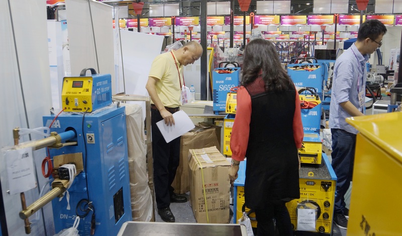 10月14日上午,汕头分团工作人员现场检查第一期参展企业展位使用情况。