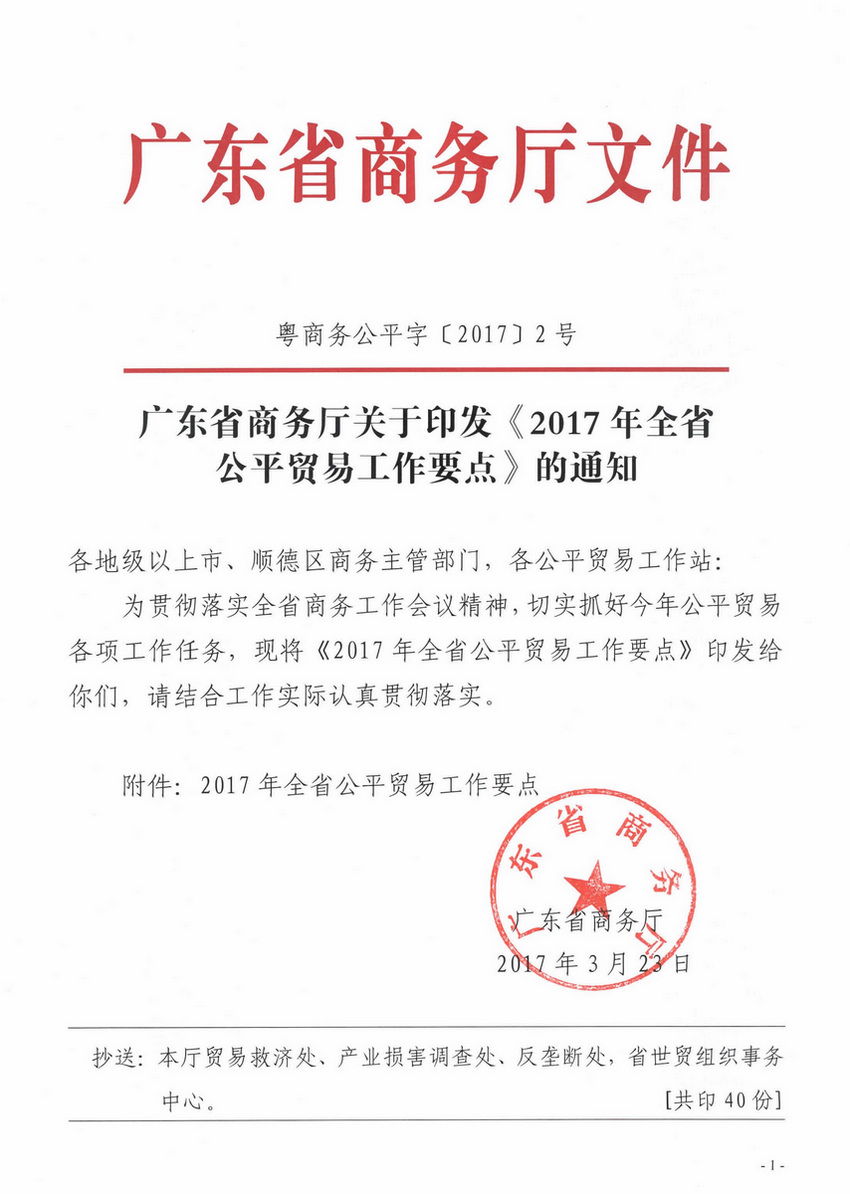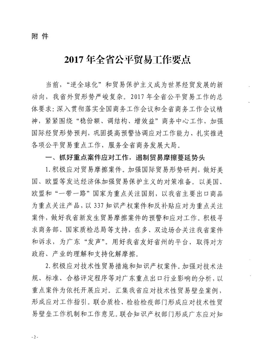 转发广东省商务厅关于印发《2017年全省公平贸易工作要点》的通知