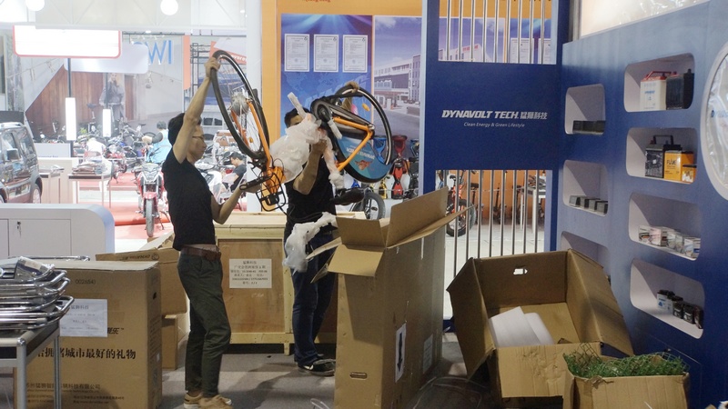 广东猛狮新能源科技股份有限公司布展人员在组装展品