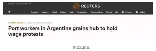 阿根廷总工会地区代表Edgardo Quiroga于4月20日宣布,阿根廷罗萨里奥港口工人将于未来几周举行抗议示威活动,要求加薪40%。Quiroga表示,“我们打算在不同的港口设施门前举行数天的抗议活动。具体时间和地点不会提前通知。”他说,示威者不会在同一时间封锁罗萨里奥港口的全部码头。