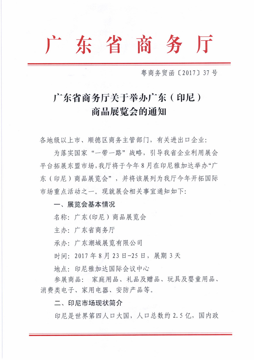 转发广东省商务厅关于举办广东(印尼)商品展览会的通知