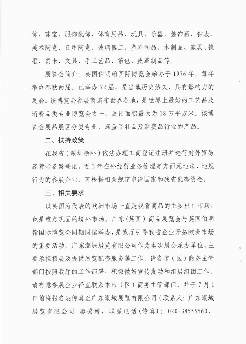 转发广东省商务厅关于组织企业参加广东(英国)商品展览会的通知