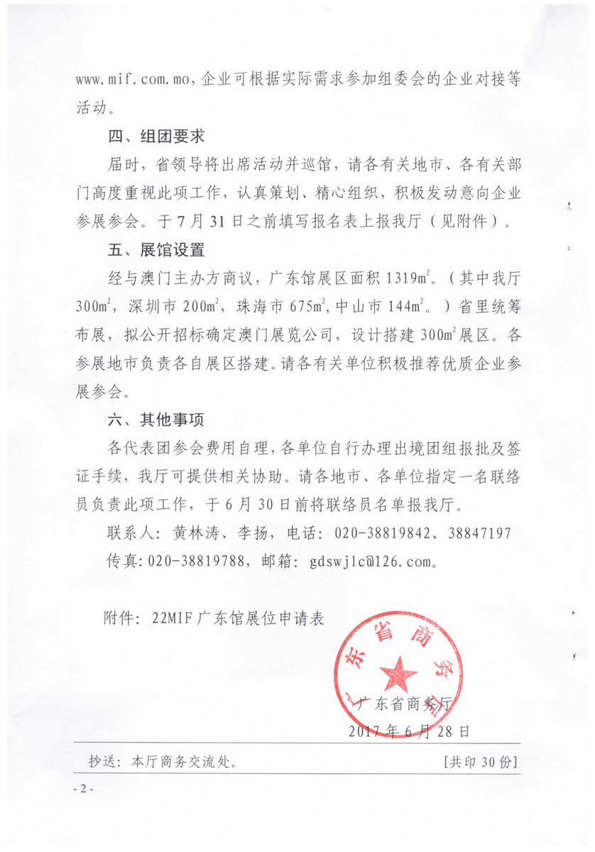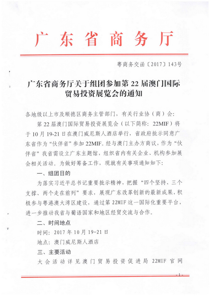 转发广东省商务厅关于组团参加第22届澳门国际贸易投资展览会的通知