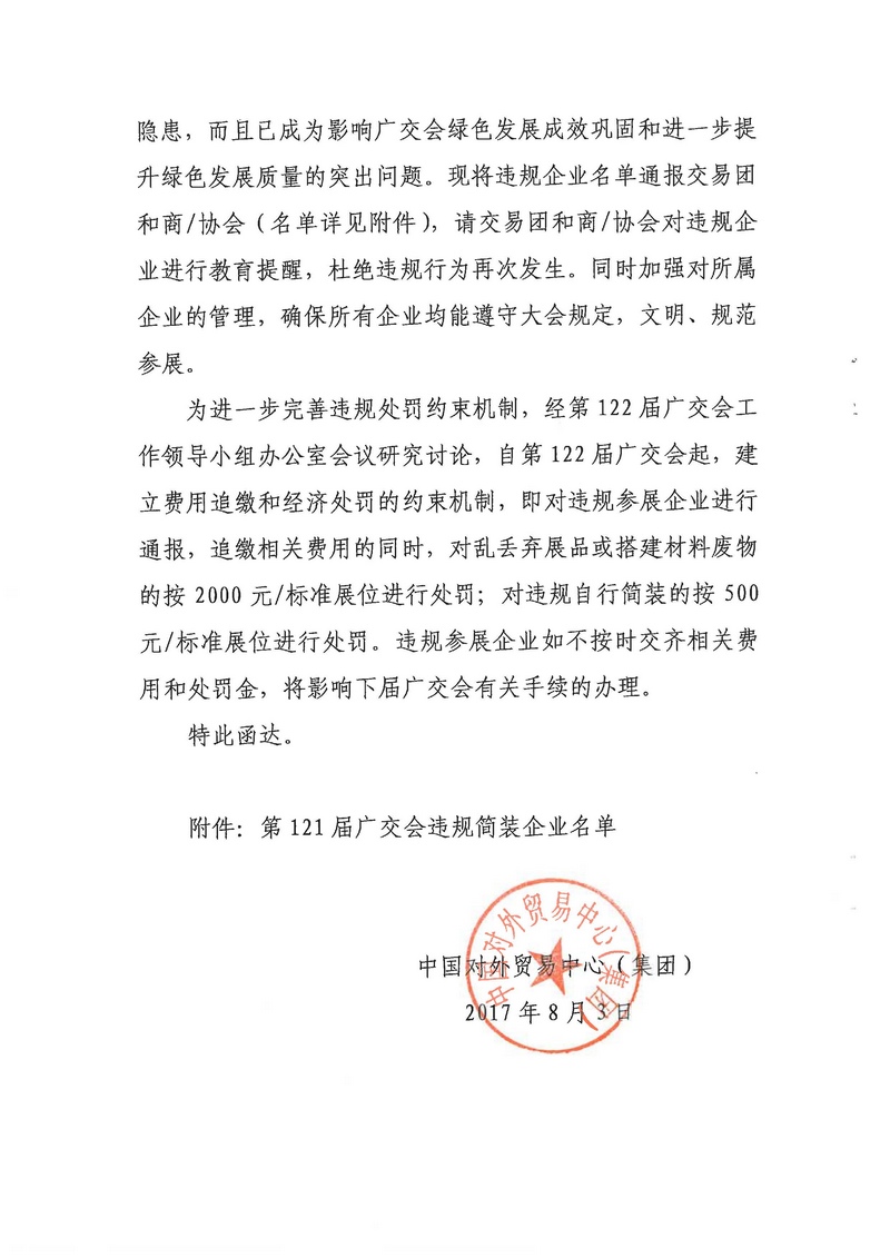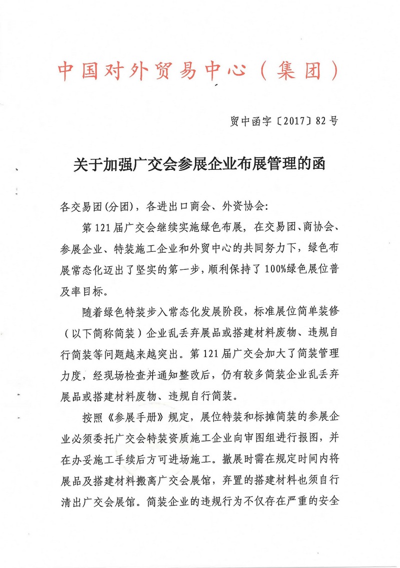 关于加强广交会参展企业布展管理的函