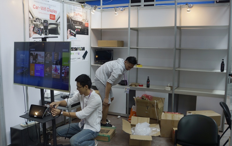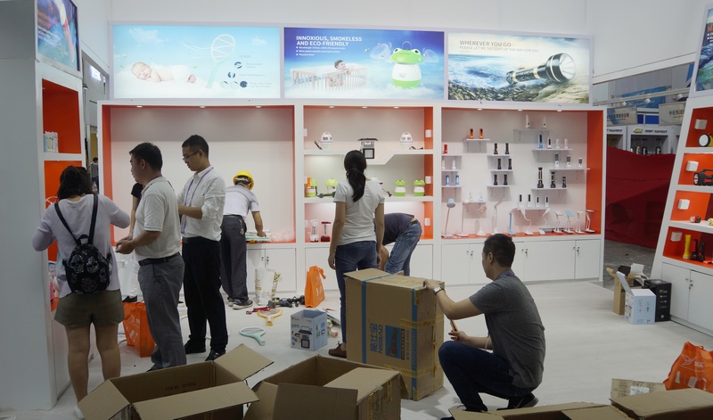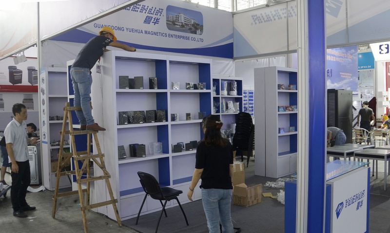 广东粤华磁电实业有限公司参展人员正抓紧布置展位