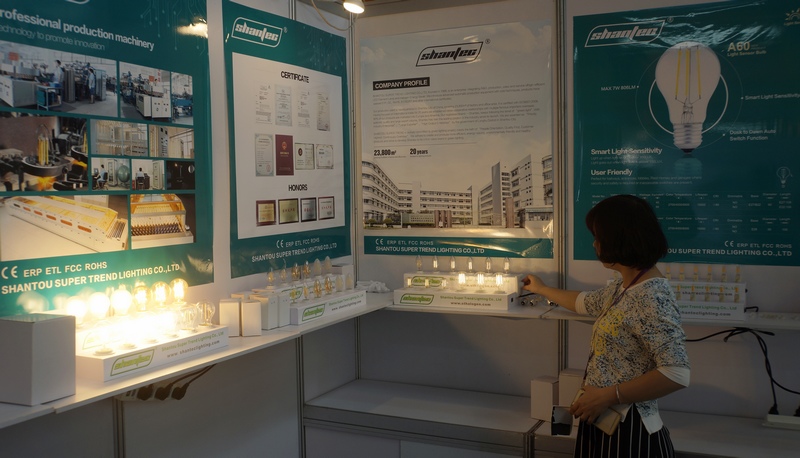 汕头超时代光源有限公司参展人员在调试展品