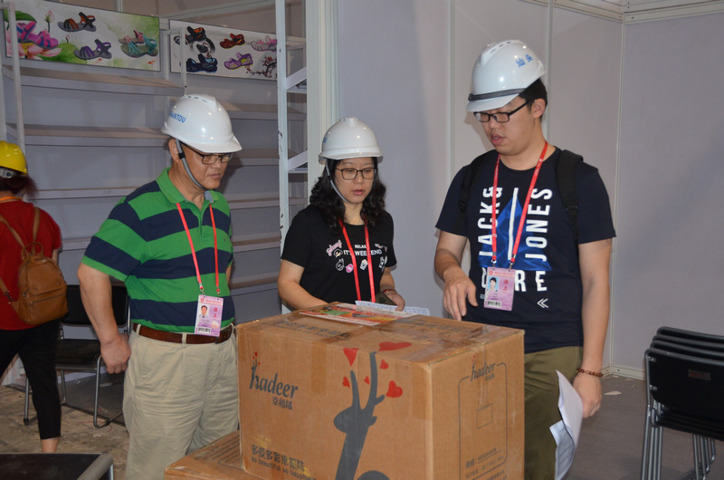 第123届广交会第三期快讯——汕头分团工作人员检查第123届广交会第三期参展企业展位使用情况