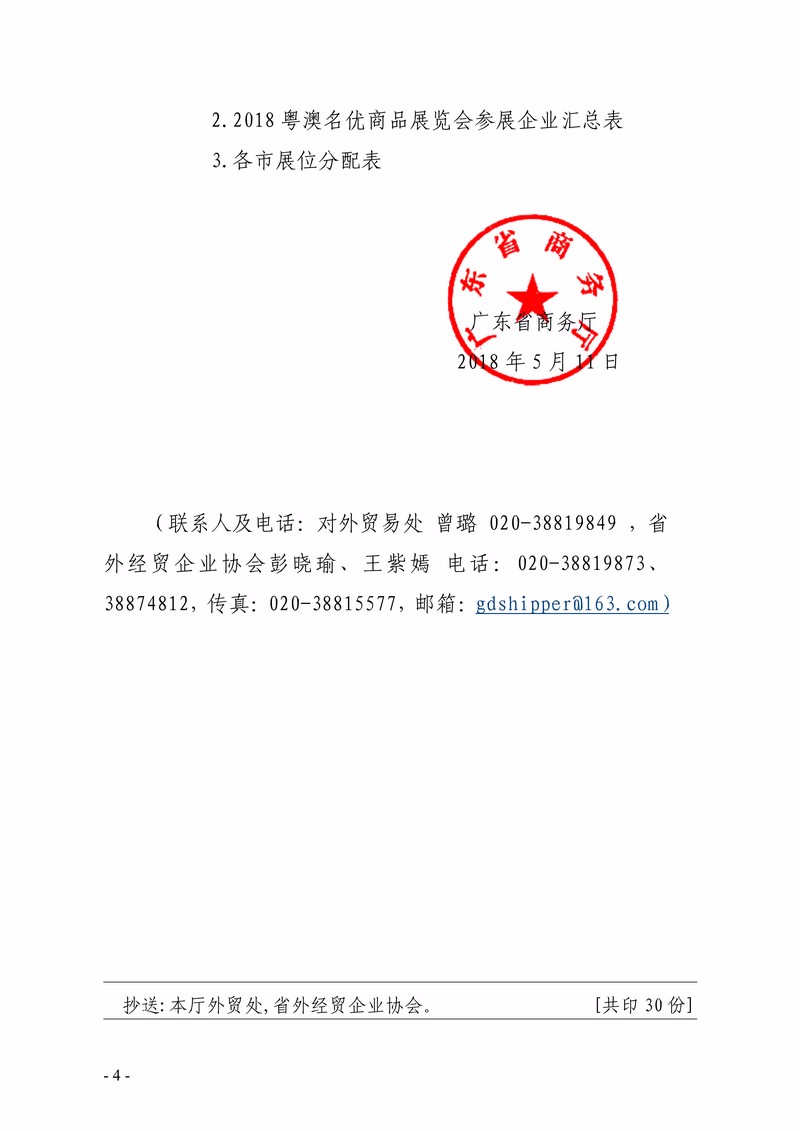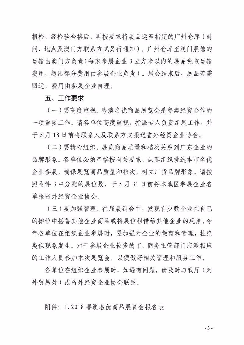 转发广东省商务厅关于组织企业参加2018粤澳名优商品展览会的通知