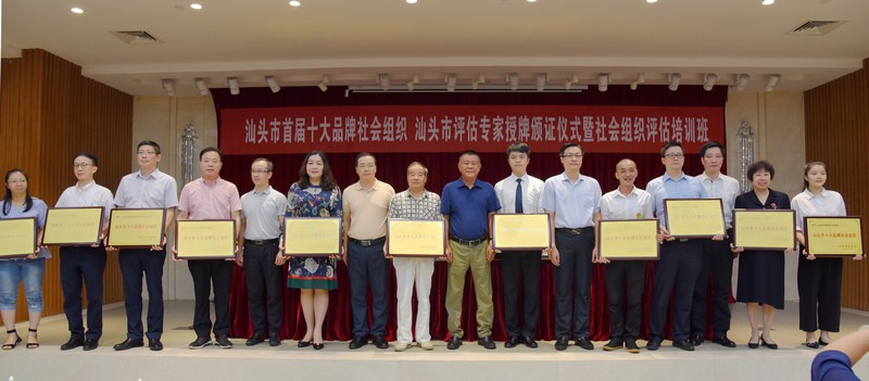 为规范汕头市社会组织法人治理结构,提升社会组织整体质量,促进社会组织参与社会治理发挥作用,8月16日上午,市民政局在市迎宾馆举办汕头市十大品牌社会组织、汕头市评估专家授牌颁证仪式暨社会组织评估培训班。
