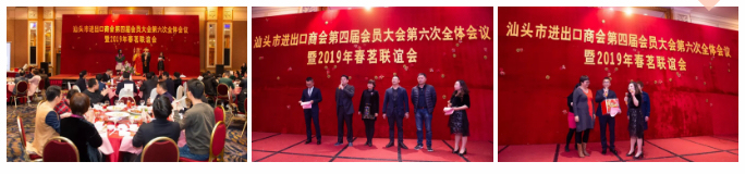 律回春晖渐,万象始更新。2月27日下午,汕头市进出口商会假座帝豪酒店召开第四届会员大会第六次全体会议暨2019年春茗联谊会,汕头市委常委、副市长李宇出席本次大会,看望慰问参会企业代表,并向广大会员致以新春问候和美好祝愿!