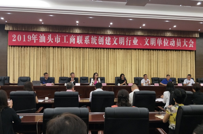 为深入贯彻落实习近平新时代中国特色社会主义思想和党的十九大精神,落实《广东省进一步加强精神文明建设行动计划》,提高我市工商联系统的行业文明服务水平,深化非公经济领域文明行业、文明单位创建活动,扩大创建覆盖面,促进我市非公经济健康发展和非公经济人士健康成长,7月10日,汕头市总商会召开2019年汕头市工商联系统创建文明行业、文明单位动员大会。会议由市工商联党组成员、副主席郑晶主持,近100名来自市、区县工商联、各行业商协会、企业的领导、代表及我会孙伟丽秘书长参加了本次会议。