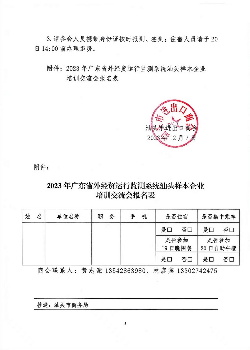 关于举办2023年广东省外经贸运行监测系统汕头样本企业培训交流会的通知