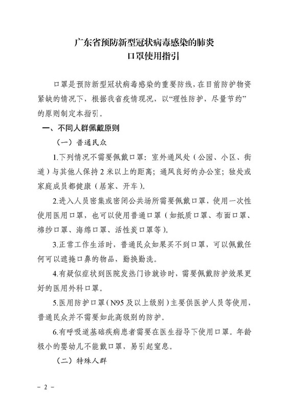 转发《广东省疾病预防控制中心关于印发广东省预防新型冠状病毒感染的肺炎口罩使用指引的通知》