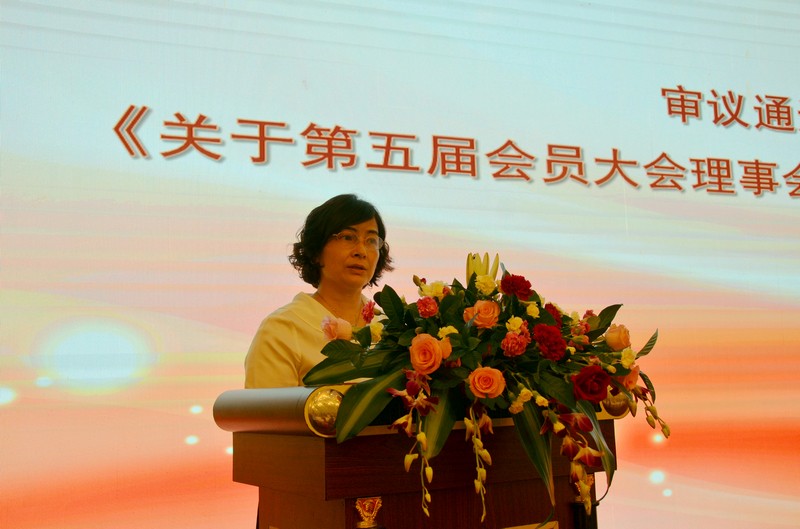 孙伟丽秘书长作《关于第五届会员大会理事会候选单位名单的提案》