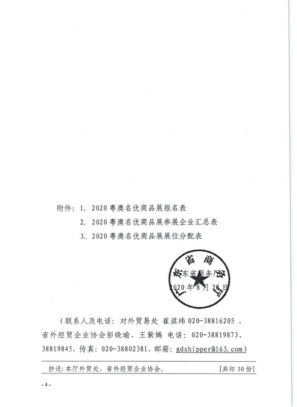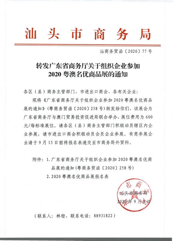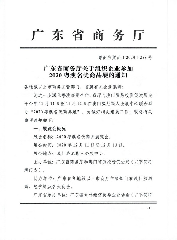 转发关于组织企业参加2020粤澳名优商品展的通知
