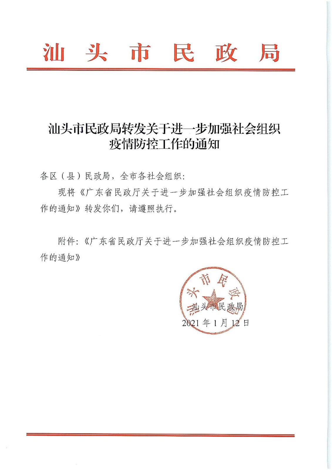 转发汕头市民政局关于进一步加强社会组织疫情防控工作的通知