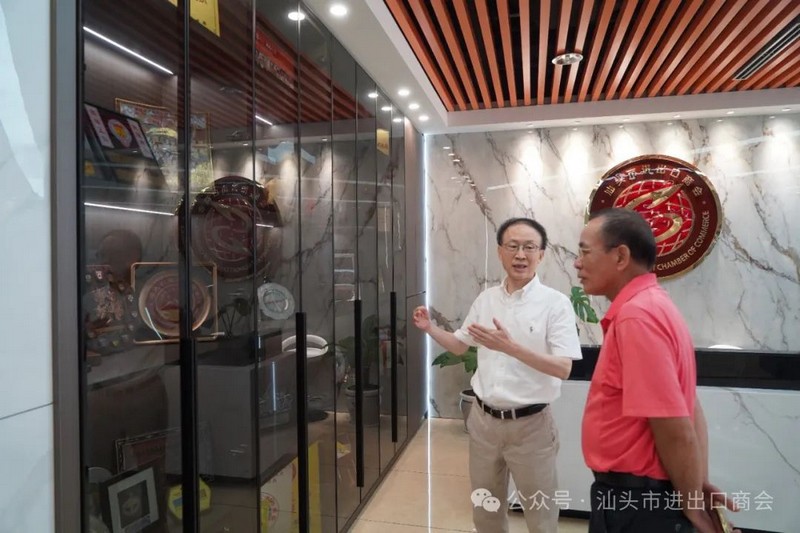陆超英会长向大家介绍了省外经贸协会近年来的发展情况,分享为省外贸企业在开拓国际市场、反映诉求、推动行业自律等方面情况。他认为,汕头市进出口商会是省外经贸协会大家庭的一份子,通过此次拜访座谈,加深联系,希望接下来有更多机会交流和对接,以推动双方业务工作的融合发展,共同为进出口行业健康发展而努力。