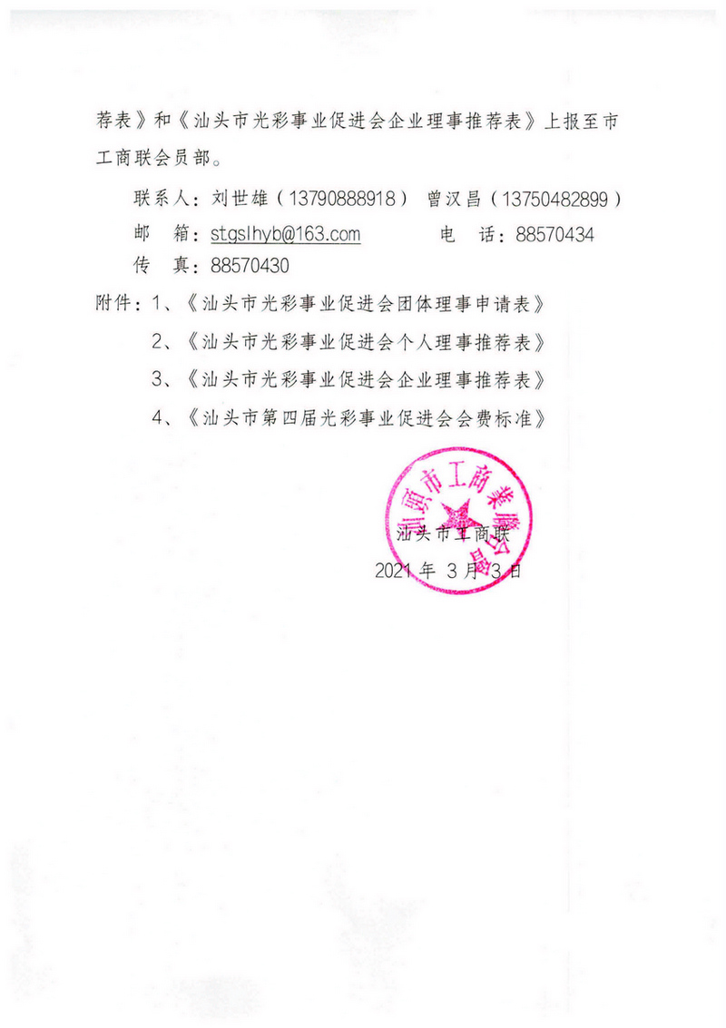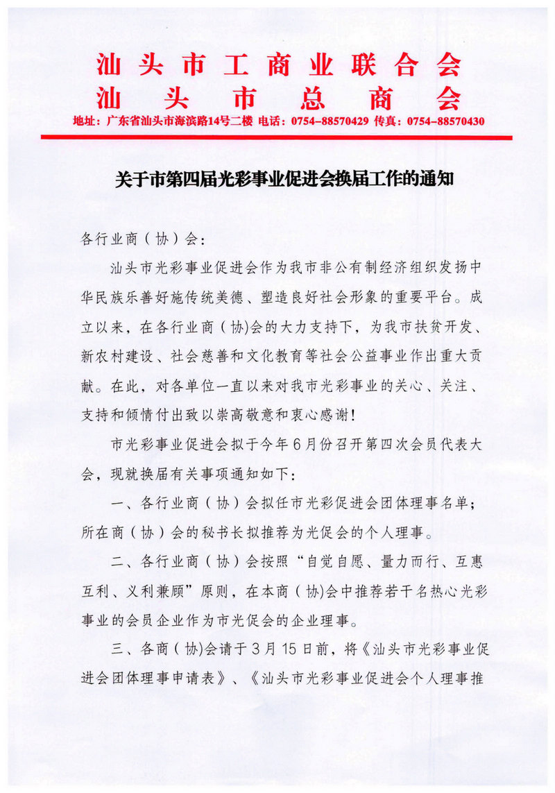 转发关于第四届光彩事业促进会换届工作的通知