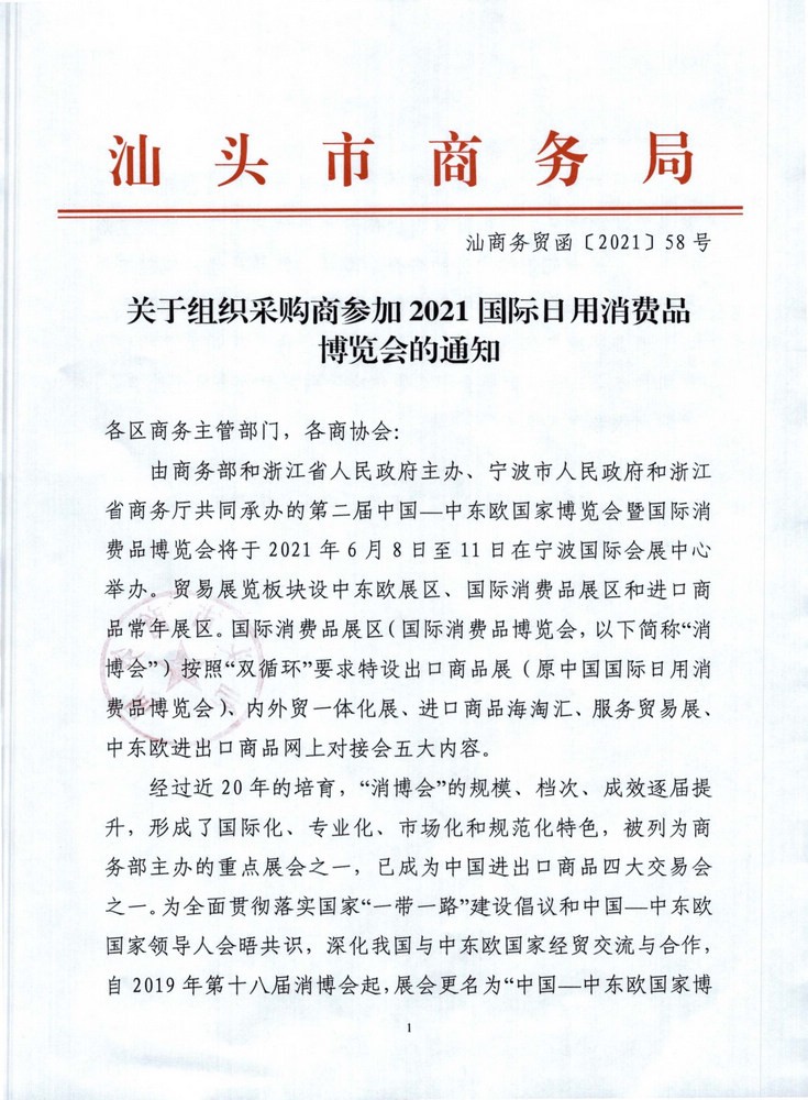 转发汕头市商务局关于组织采购商参加2021国际日用消费品博览会的通知