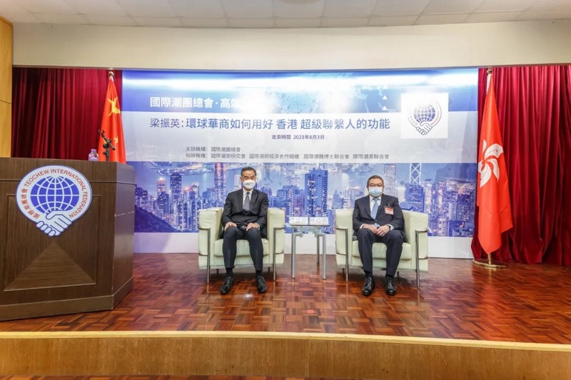2021年8月3日,由国际潮团总会主办,国际潮学研究会、国际潮商经济合作组织、国际潮籍博士联合会、国际潮青联合会协办的高端论坛,于香港潮州会馆成功举办,邀请全国政协副主席、香港特别行政区第四任行政长官、一带一路国际合作香港中心主席梁振英担任主讲嘉宾并作主题演讲。论坛由国际潮团总会执行主席陈幼南博士主持。汕头市进出口商会作为国际潮团总会的会员,在商会会长单位汕头市宜家贸易有限公司设立汕头分会场线上参会,并组织会员企业收看本次论坛视频。