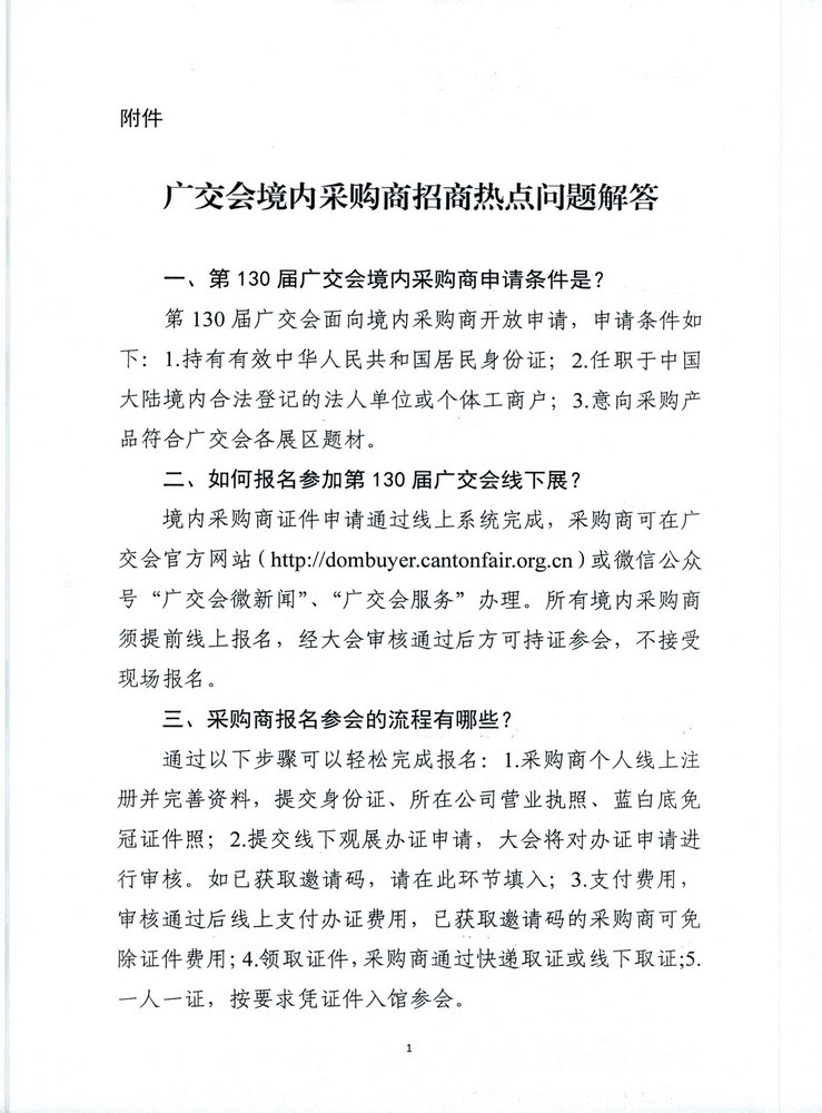 关于发动组织境内采购商参加第130届广交会的通知