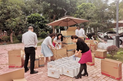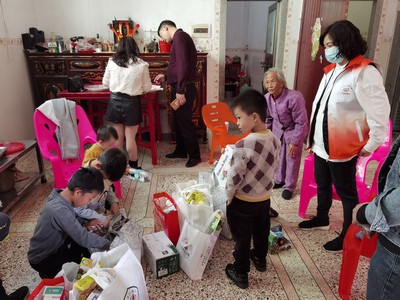 11月9日-12日,广东振丰科教玩具有限公司、广东皇儿婴童用品有限公司、汕头市金盛峰样品房、广东好心情食品集团有限公司、广东添乐化妆品有限公司、三椒口腔健康股份有限公司、广东乐普升文具有限公司、汕头金派文创科技有限公司、广东银润实业有限公司、汕头市聚奇糖果玩具实业有限公司等10家会员企业将各自企业的食品、日用品、文具、玩具等物资陆续运至商会秘书处,工作人员及时将爱心会员企业所捐赠的物资精心分类装袋,随后运送到爱心物资集中点,以便志愿组按需分发至汕头地区各留守和困境儿童手中。11月13日,秘书长孙伟丽带队到潮阳区两英镇,实地慰问7个村的12位留守和困境少年儿童,实施帮扶,送去温暖和关爱。