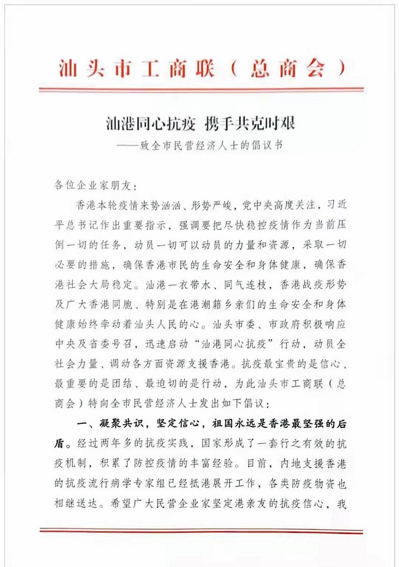 香港疫情非常严峻,市民防疫物资和部分生活物资紧缺,急需大家伸出援手来。紧急募集以下物资:连花清瘟胶囊,N95口罩,防护服,消毒液,速食食品,矿泉水等!根据汕头市工商联倡议,请大家踊跃参与!大爱无疆,感恩无限!