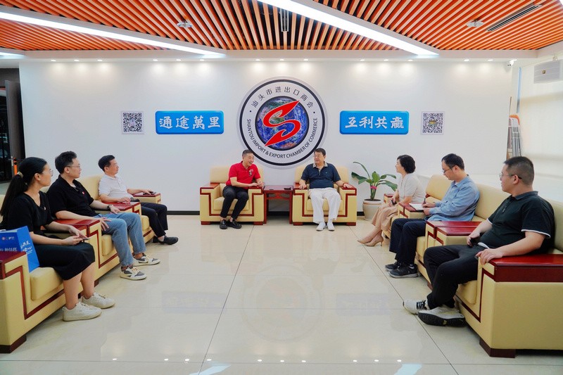 陈亮常务副会长介绍了澄海玩具协会今年以来积极筹备第23届中国汕头(澄海)国际玩具礼品博览会及相关进展情况。他表示,本次带队拜访商会,一是感谢一直以来对澄海玩具出口企业的支持;二是希望联合商会平台资源优势,邀请会员企业中的贸易类公司及其客户等采购商到会采购,扩大推介宣传效应;同时邀请商会组团到会参观交流,共襄第23届玩博会盛举。