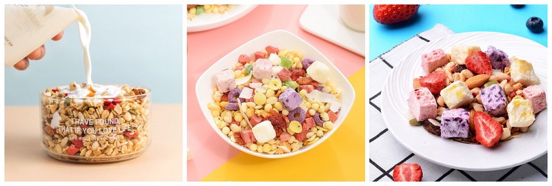 参展企业广东聚谷来健康食品有限公司是一家专业提供优质谷物杂粮、烘焙燕麦的研发、定制加工生产以及谷物原料销售于一体的企业,生产早餐谷物、休闲谷物、功能性谷物等各种烘烤、挤压熟化谷物原料和定制代加工产品。在国内市场,企业是与伊利、百事桂格、家乐氏、王饱饱、三只松鼠、良品铺子等多个知名品牌长期合作的行业龙头企业之一,但作为“新广交”首次参加广交会,企业高度重视并积极筹备,在广交会“云展厅”上架近50款产品,主推谷物块系列和燕麦饮系列产品,迎合低糖、低脂、低热量的健康饮食消费趋势,在保留零食和饮料的美味口感的基础上,突出非蔗糖、非油炸、五谷杂粮高纤维等健康理念和产品卖点,吸引了不少国内外客商前来咨询了解。