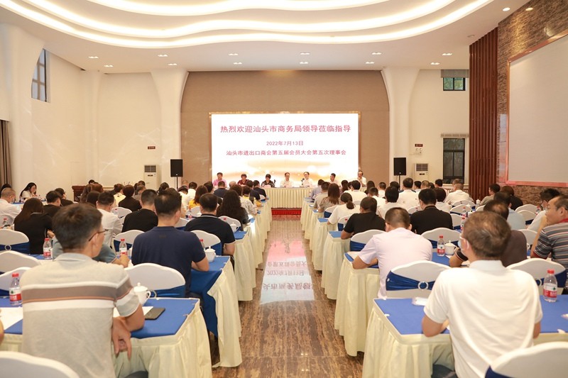 盛夏的鮀城水碧天蓝,2022年7月13日下午,汕头市进出口商会假座汕头中海南滨大酒店召开第五届第五次理事会,汕头市商务局局长林楚雄、副局长周乐宜、外贸科负责人等应邀出席,商会会长陈雄勇,永远荣誉会长陈秀聪,常务副会长许丽粧、林晓、许木营,副会长郑冬生、陈平、黄镇华、林梨莉、陈松鹰、朱楚鹏、陈奕、陈云曦、蔡馥蔓、谢汉丽、蔡思嘉、邱志宏、林伟集、卢醉兰、黄林青、张秋娜、朱荣彬、李洁溶、张泽钦、郭波、张先铭、吴志耿、黄伟腾,秘书长孙伟丽以及理事单位代表,监事长陈晓东,党支部书记林振仪等近百人参加会议。陈雄勇会长主持会议。