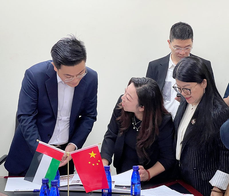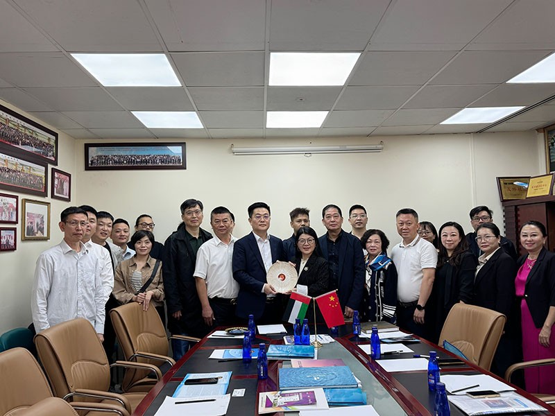 阿联酋作为中东地区的重要贸易枢纽,其市场辐射力和商业价值不言而喻。得益于中东地区宽松的政策环境,我国与阿联酋的经贸往来日益密切。12月16日,商会展团拜访了阿联酋广东商会,受到了张钦伟会长的热情接待。活动中,张秋娜副会长代表商会向阿联酋广东商会介绍本会基本情况。表示商会汇聚了700多家外贸企业,涵盖了多个行业,涉及广泛领域的产品,当前许多企业正处于提升核心竞争力、转型升级的关键时期,希望通过此次拜访交流,为企业拓市场开辟新路径。张钦伟会长向商会展团全体成员表示热烈的欢迎,他介绍了阿联酋广东商会的发展历史和成绩。多年来商会已成功协助会员企业在迪拜、沙迦、阿基曼等酋长国投资建立了多个广东商品展销中心,涵盖了电子、纺织、房地产、家具、日用消费品等多个行业,为广东企业深入中东市场提供了强有力的支持,希望这些成熟的运营经验和市场渠道能够助力汕头企业在中东市场的快速拓展,并建立自主产品的国际销售网络。王枫副秘书长介绍了展团成员、产品信息及对接需求,邀请大家到展会现场对接采购,亲身体验“汕头制造”的品质实力。最后双方互赠纪念品,深入交流,架起了经贸联系之桥。