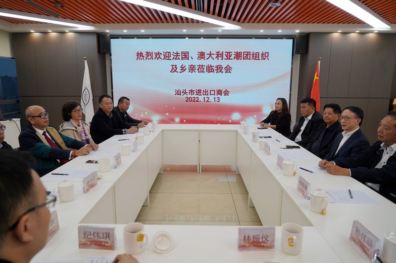 会谈中,贵宾们对商会成立20周年表示热烈祝贺!同时,文瑞潮会长与大家分享了法国潮州会馆的历史与现状、精神与情怀。近期他们正打算由法国潮州会馆带头推动成立欧洲潮商会,联合欧洲华裔青年、各领域专业科技才俊,抓住中国最新的发展商机,为中国企业走进欧洲市场创造机会、提供专业平台服务。希望借访问汕头市进出口商会的契机,诚邀汕头进出口企业携汕头品牌、名优产品到法国开展经贸合作。