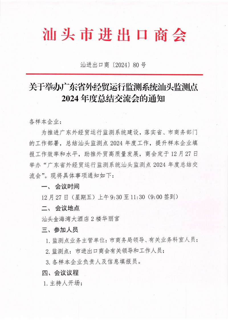 关于举办广东省外经贸运行监测系统汕头监测点2024年度总结交流会的通知