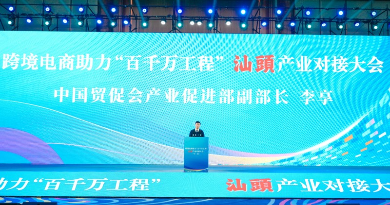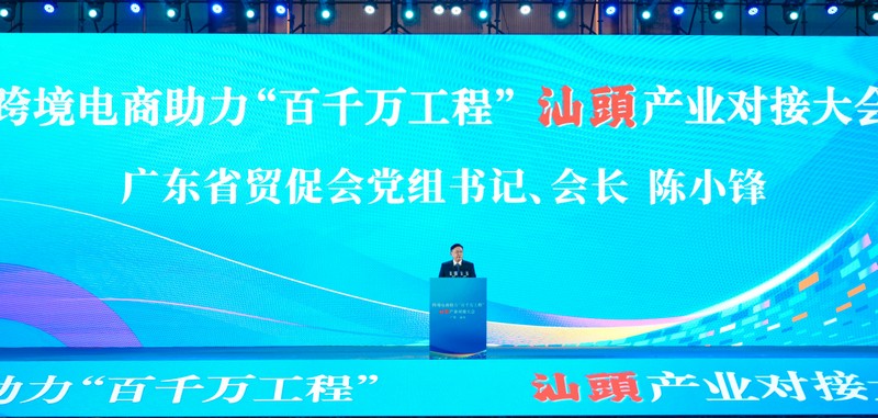 3月25日,由广东省“百千万工程”指挥部办公室指导,广东省贸促会、汕头市人民政府联合主办的“跨境电商助力‘百千万工程’汕头产业对接大会”在汕头国际会展中心举行。中国贸促会产业促进部副部长李享,广东省贸促会党组书记、会长陈小锋出席活动并致辞。市委书记温湛滨出席活动,市长陈涛为大会致开幕词。