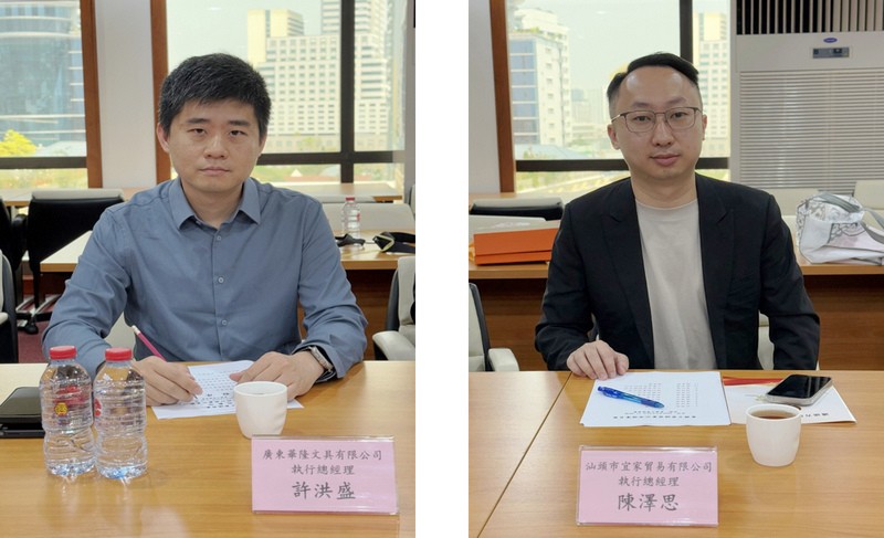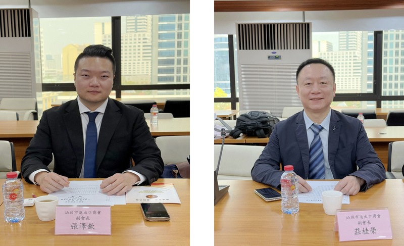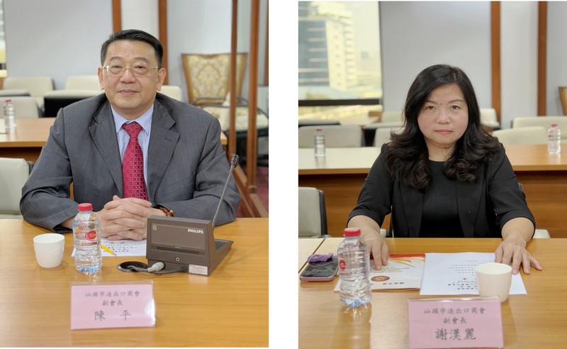 汕头市进出口商会代表团有:会长陈雄勇,常务副会长许丽粧、许木营,副会长黄益生、陈平、谢汉丽、张秋娜、李洁溶、张泽钦、庄桂荣,汕头市宜家贸易有限公司执行总经理陈泽思、广东华隆文具有限公司执行总经理许洪盛、汕头高新区德昕实业有限公司经理谢嘉纯、广东森阳国际物流有限公司经理蔡丽娜以及副秘书长王枫。